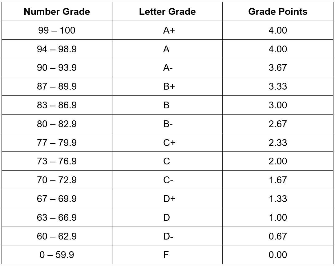 • Receive at least a “ D- ” in all courses.